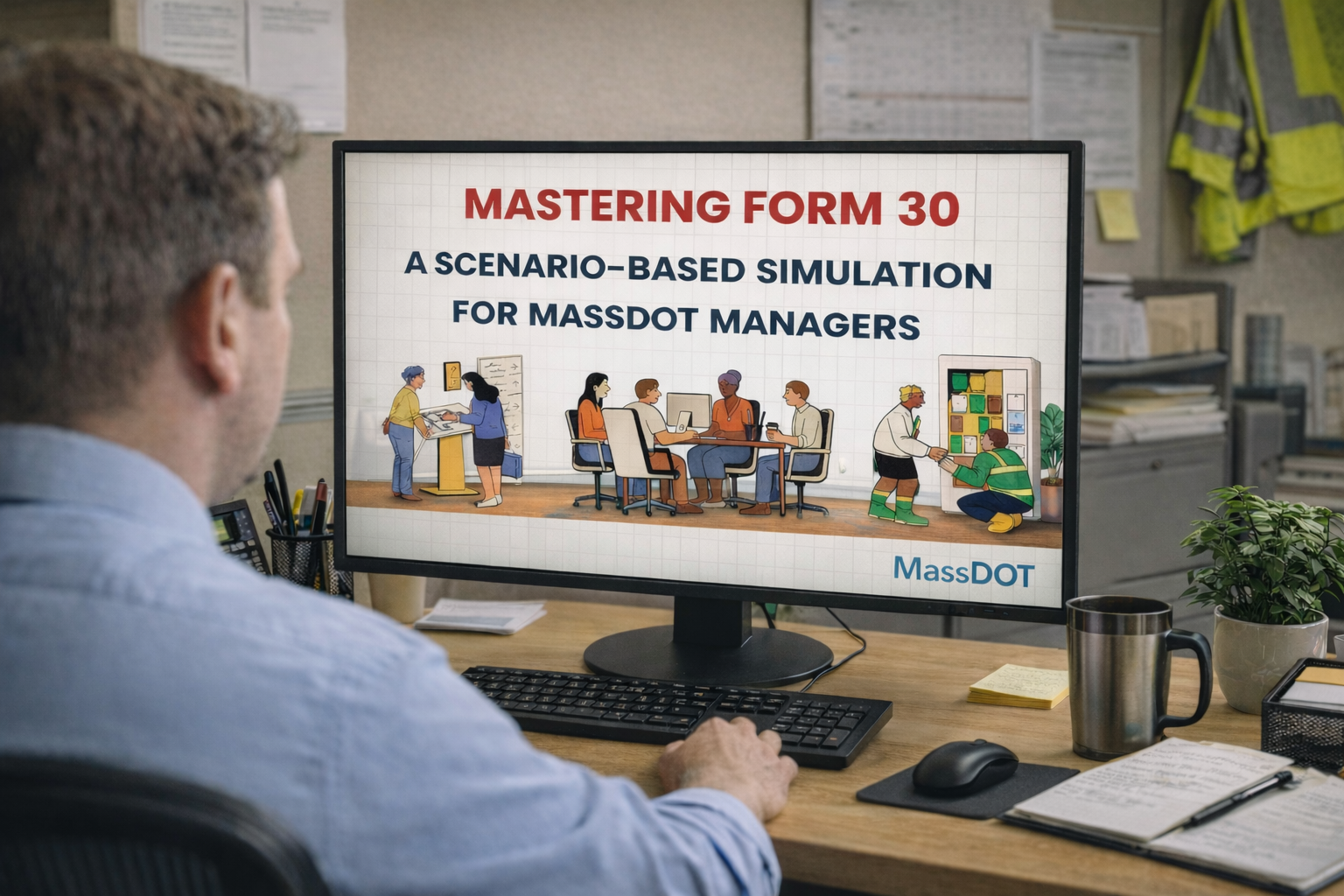 An interactive e-learning course for MassDOT managers that improves accuracy and consistency when completing Form 30, supporting compliant job classification and clear role definition.