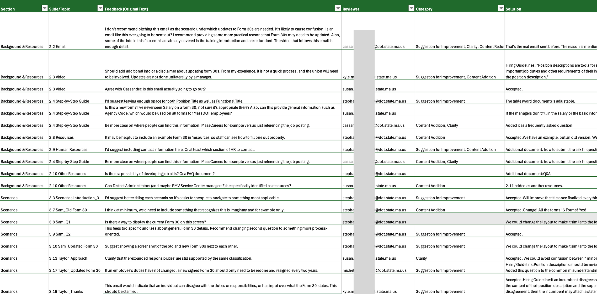 Over 100 pieces of feedback from managers were analyzed and categorized to address content accuracy, information clarity, and effective delivery. -