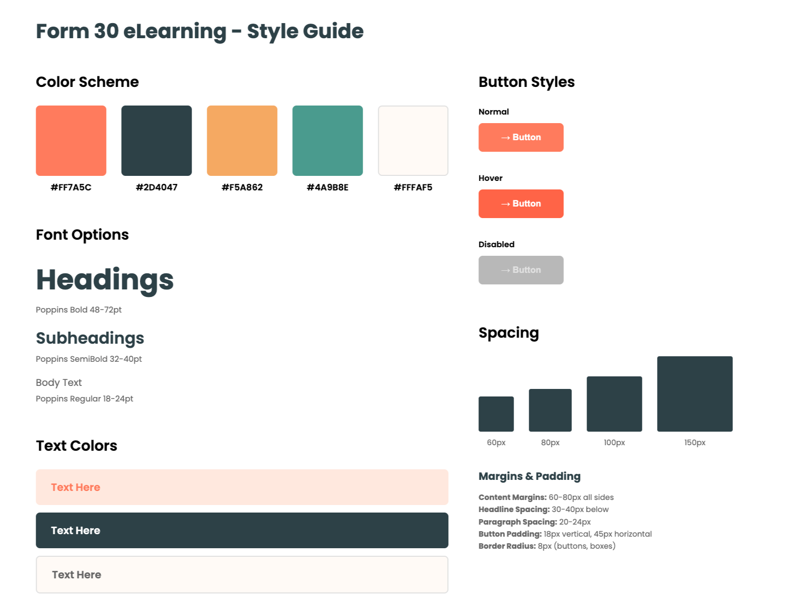 I began the visual design process by curating a mood board inspired by Canva templates. Because the eLearning was designed for an office environment, I selected templates with a professional office theme. After discussions with my supervisor (Manager of Learning & Development), we chose a more vivid color palette to improve visual clarity and accessibility.