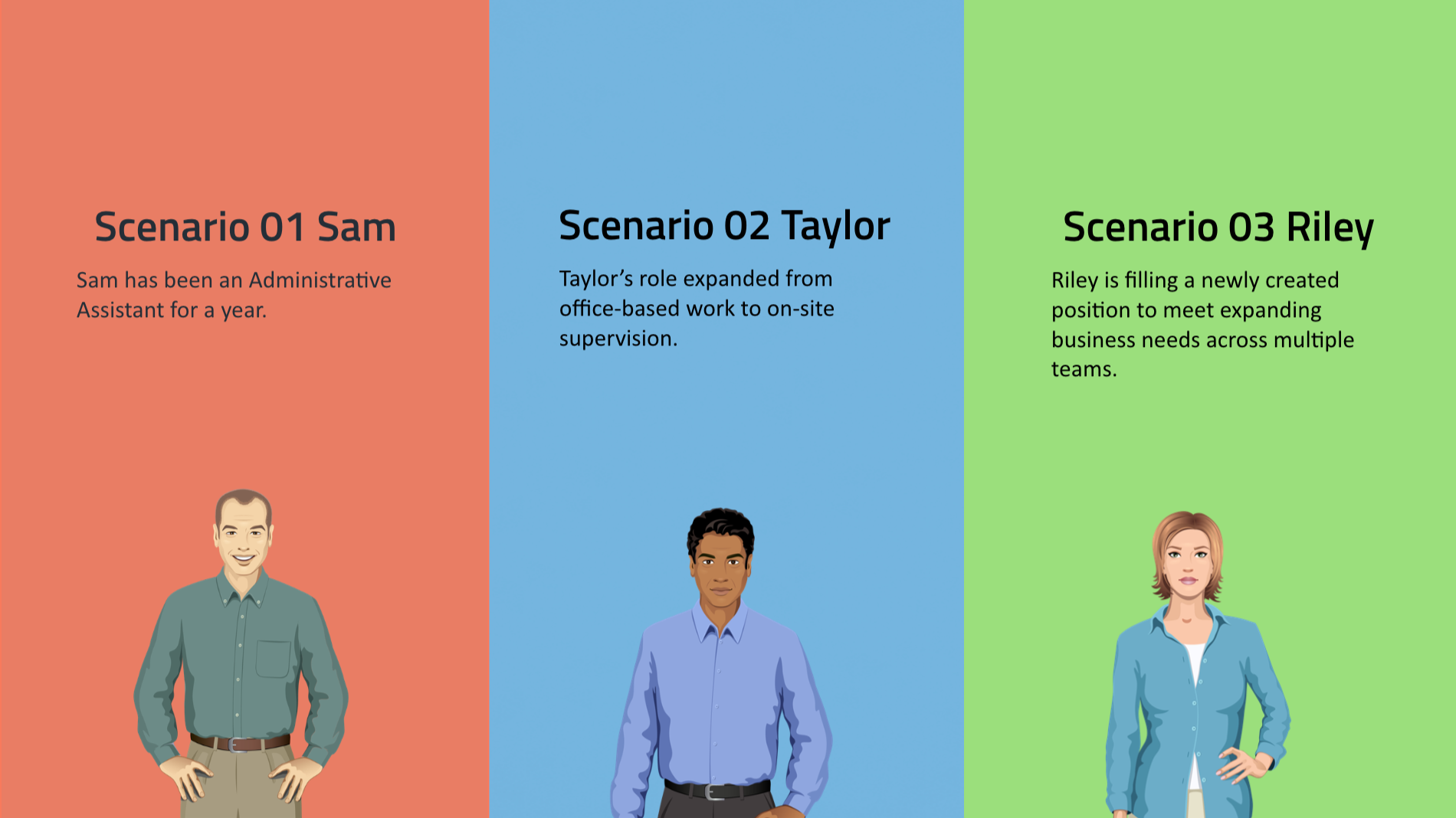 Given the heavy use of character-based dialogue throughout the learning experience, I incorporated cartoon-style characters from the Articulate Storyline character library to support scenario-based interactions and maintain visual consistency.